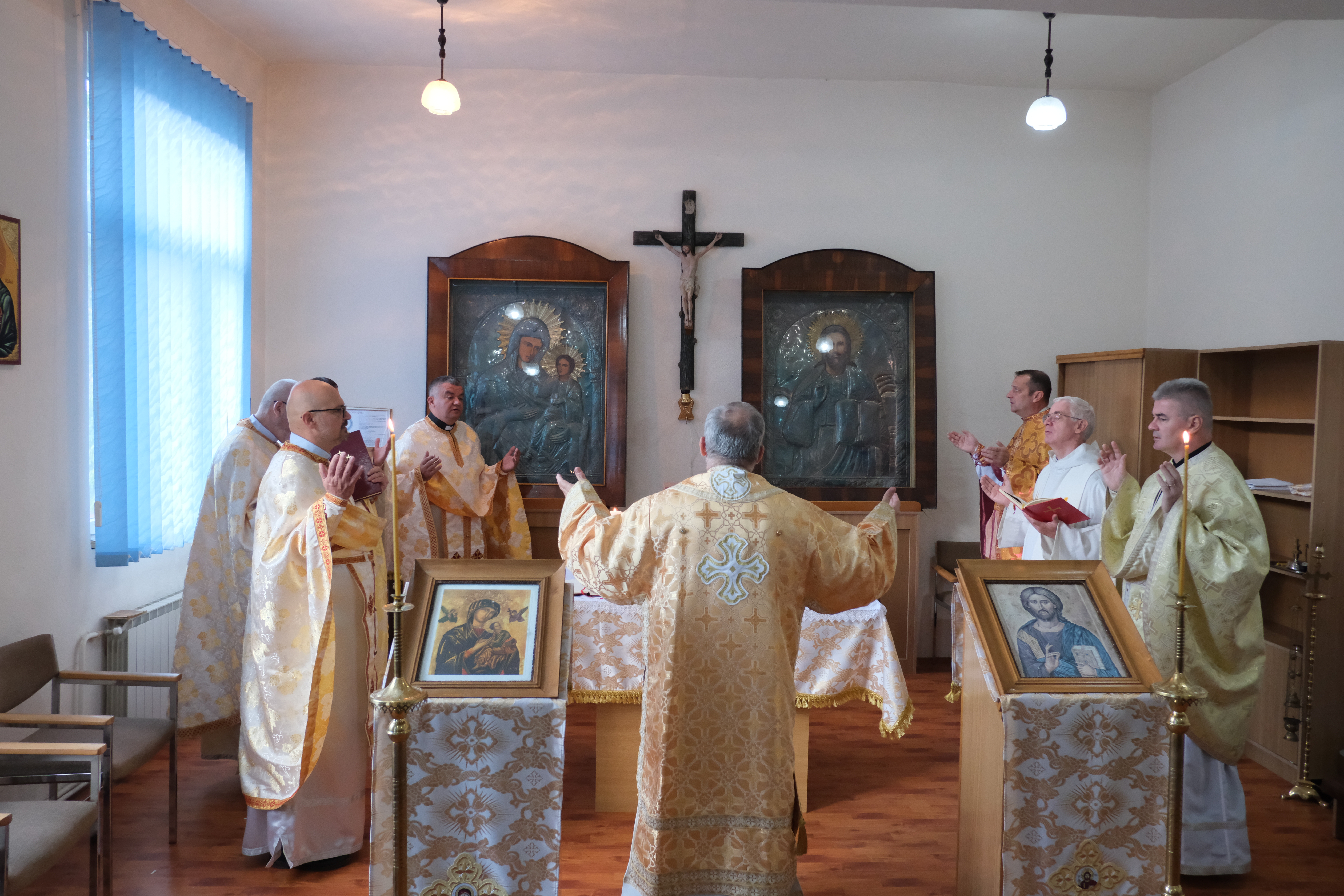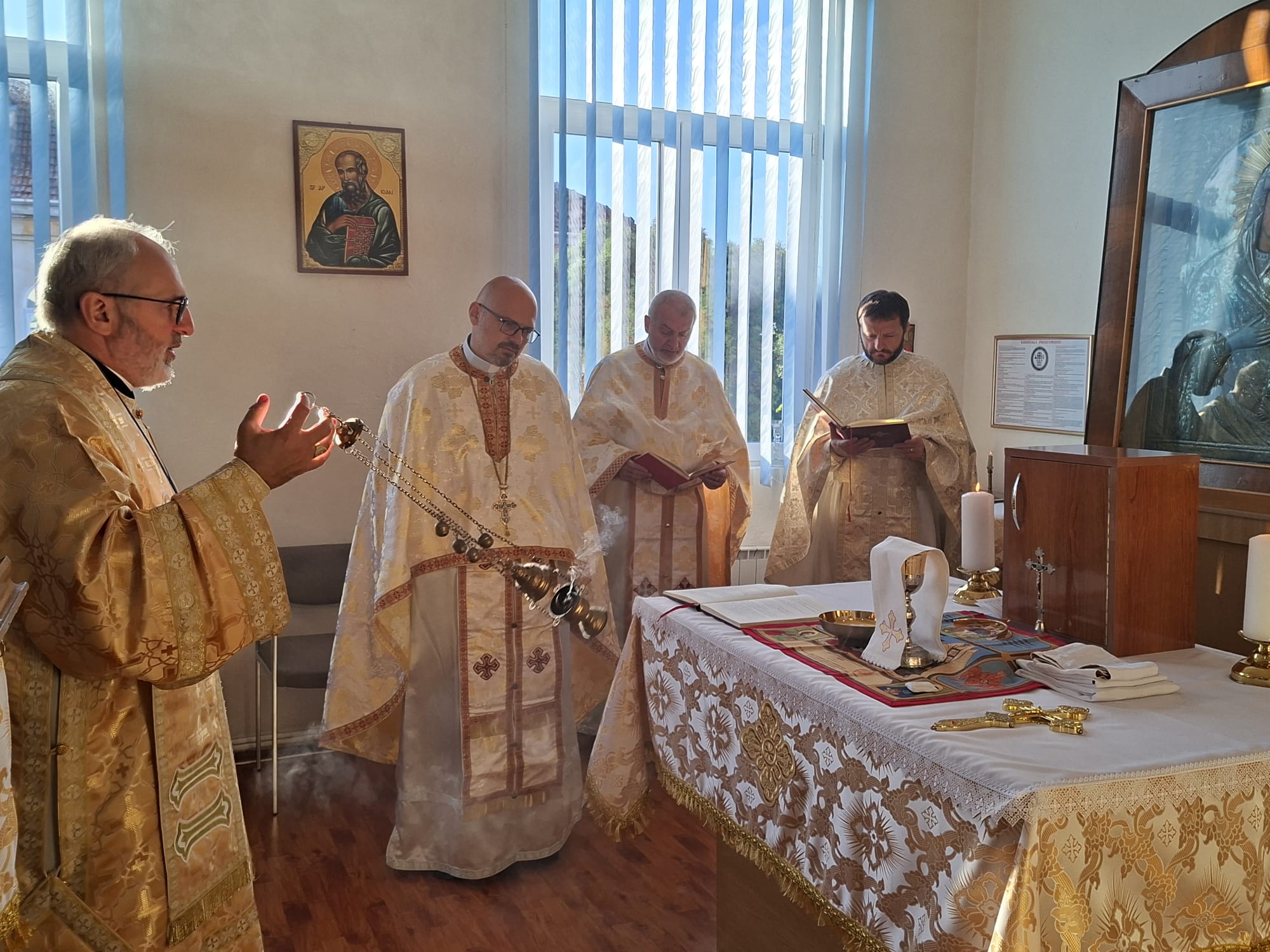 Pomenirea ierarhiei în cadrul celebrărilor liturgice se va face în felul următor: „Pe Sfântul Părinte Papa LEON, pe Preafericitul Părinte Arhiepiscop CLAUDIU, pe Preasfințit Episcopul nostru (N.), …”.