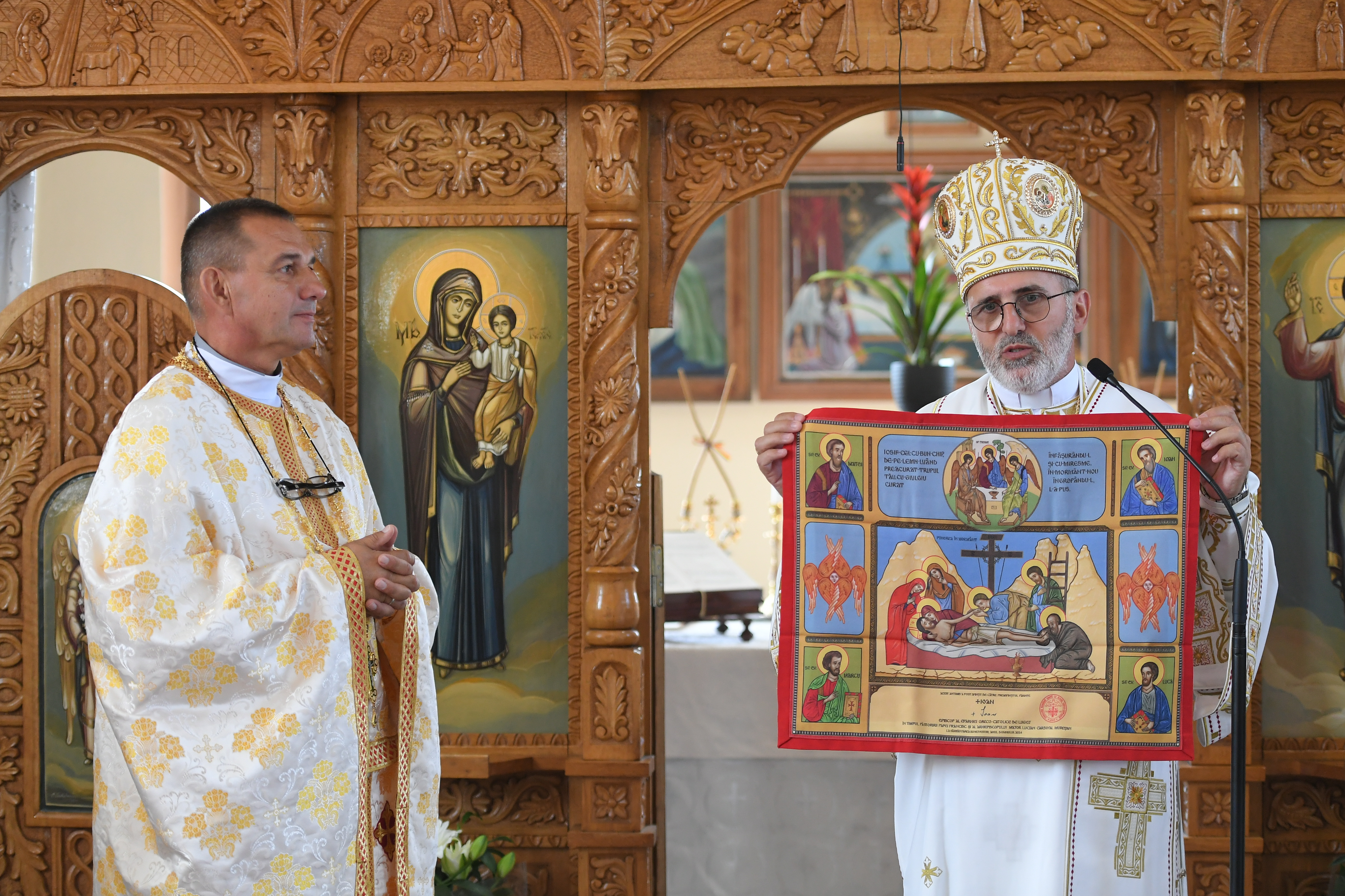 Tot miercuri, 14 mai PS Ioan împreună cu preoţii consilieri eparhiali, a participat la Sfânta Liturghie în rit bizantin celebrată în Bazilica San Pietro, la altarul Catedrei. Celebrantul principal a fost Preafericirea Sa Youssef Absi, Patriarhul Bisericii Melchite. Din partea Bisericii Greco-Catolice din România au participat Preasfinția Sa Cristian Crișan, în numele PF Cardinal Lucian Mureşan, Întâistătătorului Bisericii noastre, Preasfinția Sa Virgil Bercea, Episcop al Eparhiei de Oradea Mare, Preasfinția Sa Claudiu Lucian Pop, Episcop al Eparhiei de Cluj-Gherla, și Preasfinția Sa Mihai Frățilă, Episcop al Eparhiei de București. De asemenea, s-au unit în rugăciune Patriarhi, Mitropoliți, Episcopi și preoți din bisericile orientale catolice sui iuris de rit bizantin. Predica a fost rostită de PF Sviatoslav Șevciuc, Arhiepiscopul Major al Bisericii Greco-Catolice din Ucraina, fiind evidențiat faptul că speranța creștină izvorăște din comuniunea euharistică, unde se revelează unitatea Bisericii în Spiritul Sfânt, ca anticipare a Împărăției lui Dumnezeu.