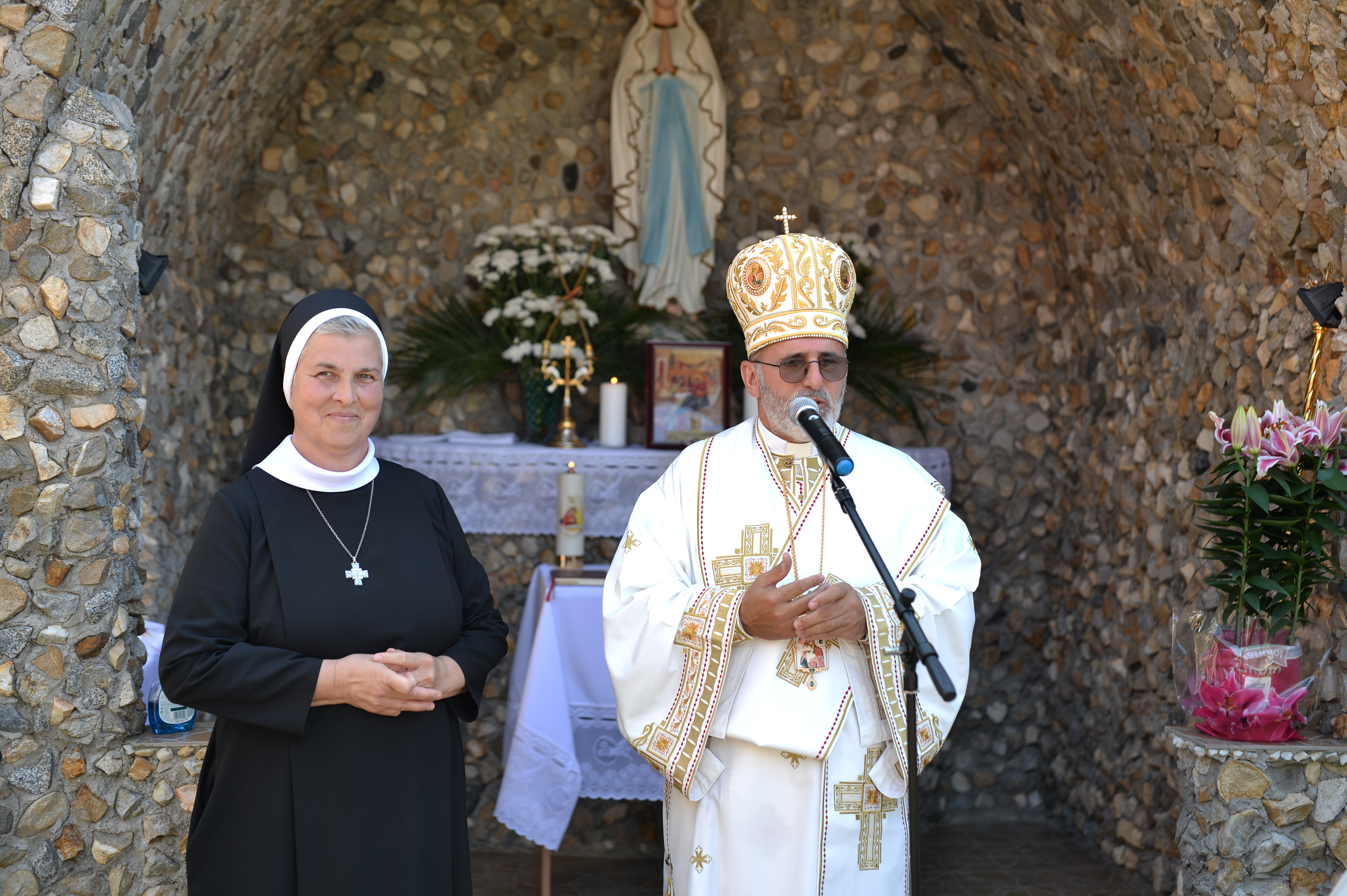 În acest an, 8 septembrie a picat într-o zi de duminică şi astfel, programul s-a desfăşurat dimineaţa, în curtea mănăstirii. La ora 9.30 a început Utrania apoi s-a continuat cu celebrarea Sfintei Liturghii arhiereşti de către PS Ioan. Răspunsurile au fost date de corul catedralei „Reînvierea” dirijat de d-na Prof. Olimpia Drăgan şi de Surorile Baziliene. Foto: Raimondo-Mario Rupp.