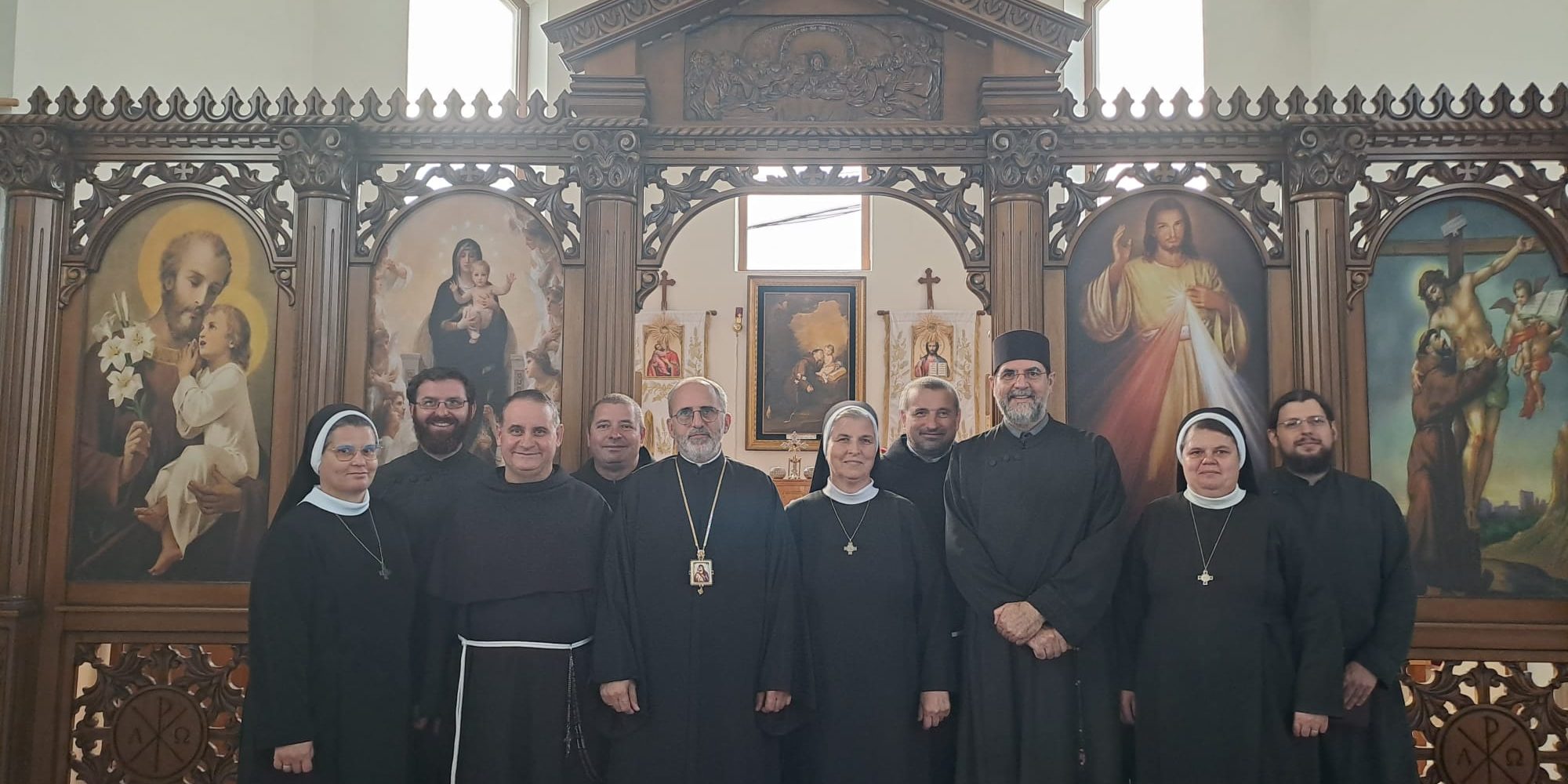 Au participat Frații călugări de la Mănăstirea Preasfânta Treime din Giroc în frunte cu Starețul, Părintele Ieromonah Atanasie, surorile din Ordinul Sfântului Vasile cel Mare (OSBM) de la Mănăstirea Nașterea Maicii Domnului din Lugoj, în frunte cu Preacuvioasa Maică Valentina, precum și Părinții și frații franciscani de la Mănăstirea Adormirea Maicii Domnului din Chișineu-Criș, avându-l ca Stareț (superior – gurdian) pe Pr. Mihai Blăjuț OFM Conv.