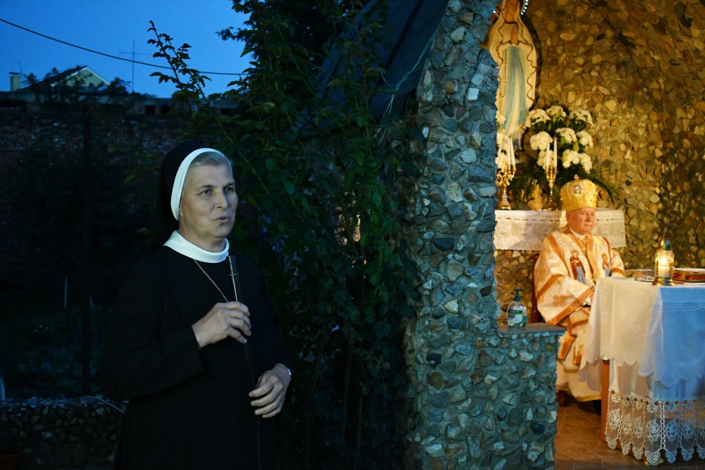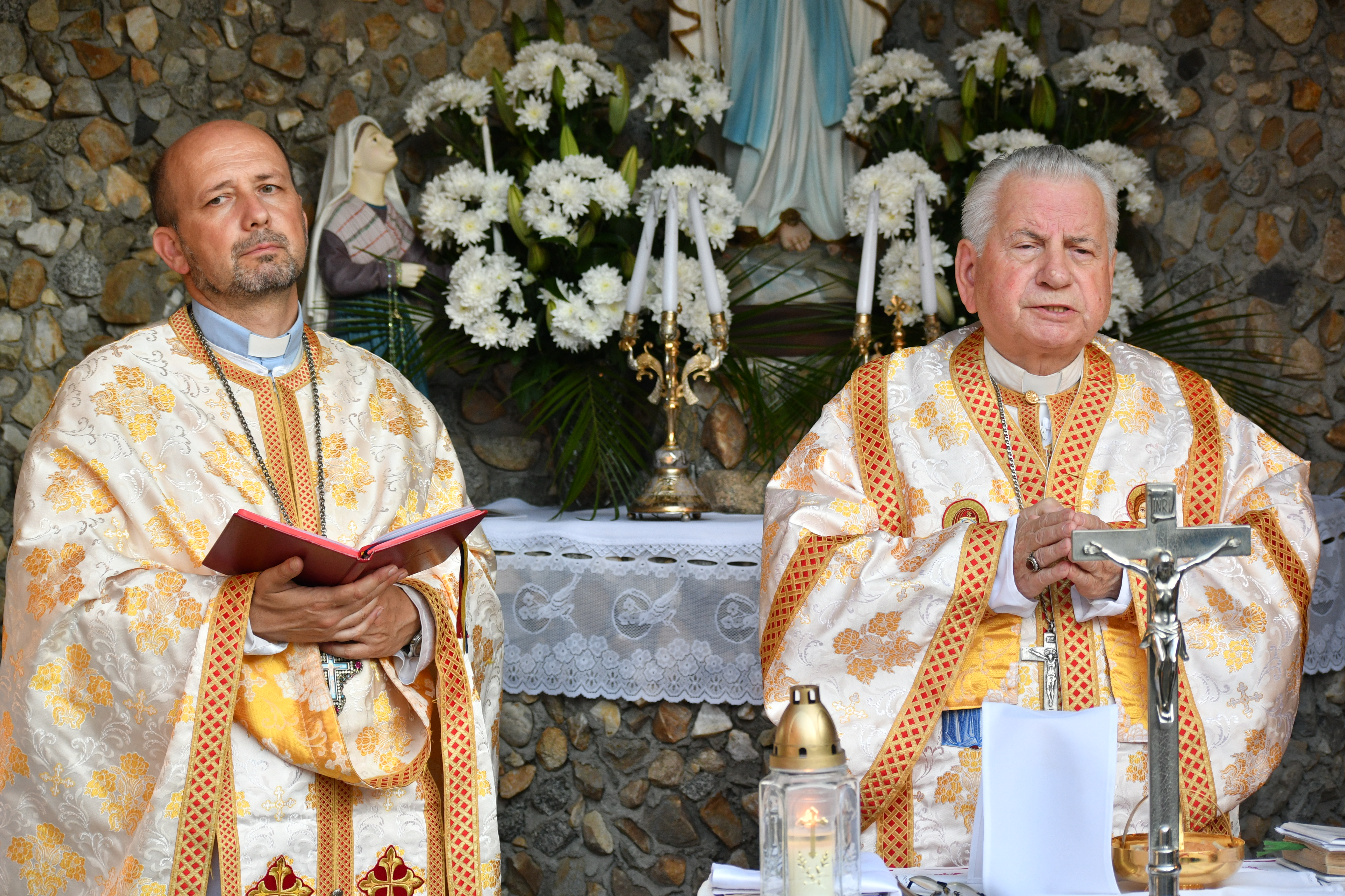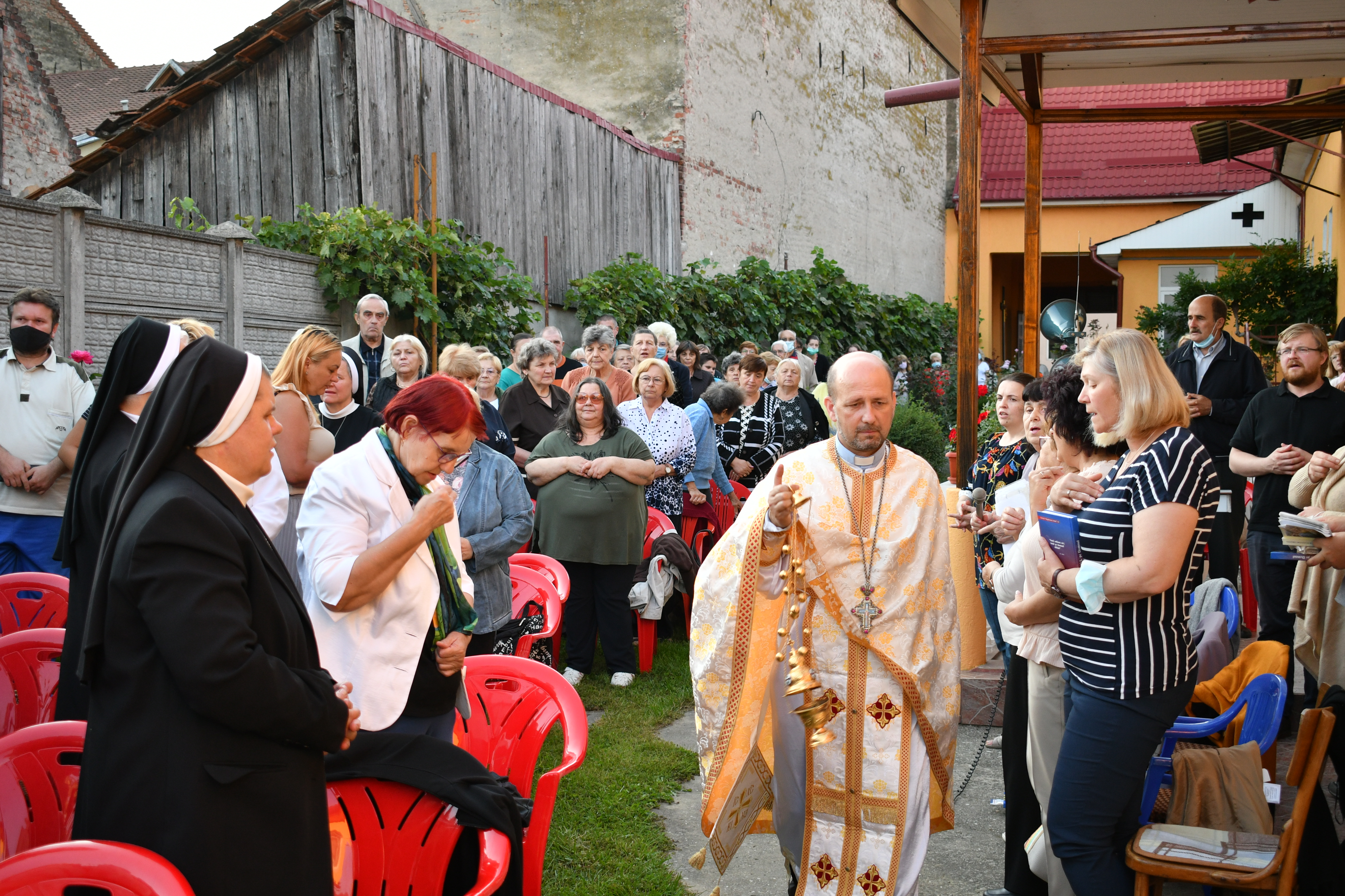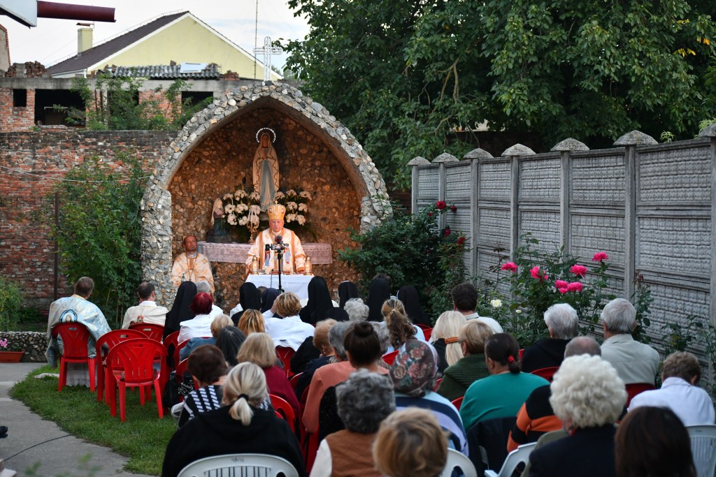 Programul a început în curtea mănăstirii de la orele 18.00 cu Rânduiala Acatistul Maicii Domnului. A urmat Sfânta Liturghie pontificată de Preasfinţia Sa, Alexandru Mesian, Episcop de Lugoj. Au concelebrat: Mons. Angelo-Narcis Pop, Vicar general; pr. prot. on. Ioan Pop, parohul Catedralei, pr. Ioan Brîndău, paroh la Budinţ, pr. Alin Ioan Taichiş, paroh la Izvin, pr. Iulian Haşciar, paroh al sanctuarului marian de la Scăiuş, pr. Ardelean Narcis, paroh la Șanovița şi pr. Ionuţ Blidar, din parohia Timişoara V.