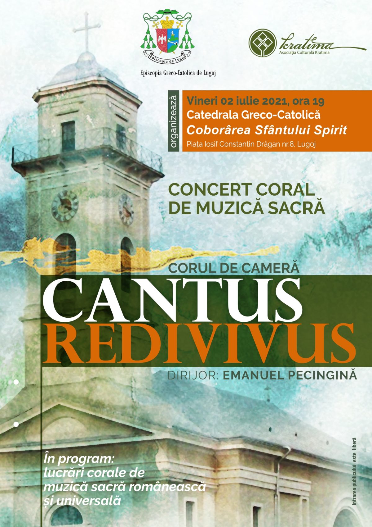După o perioadă îndelungată, accentuată şi de contextul pandemiei COVID-19, credincioşii greco-catolici lugojeni dar şi publicul iubitor al cântului coral, s-au putut bucura de un concert de muzică sacră, în seara zilei de 2 iulie, în Catedrala „Coborârea Sfântului Spirit” din Lugoj. Concertul a fost susţinut de Corul de Cameră „Cantus Redivivus”, condus de prof.…