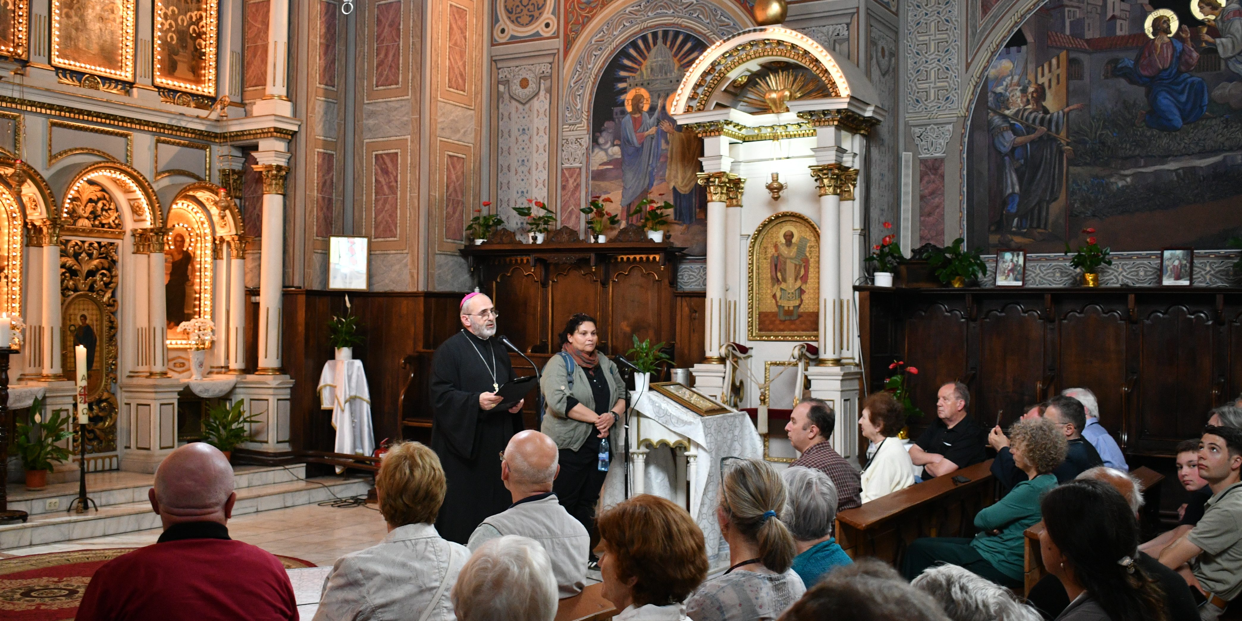 Oaspeții au vizitat mai întâi Catedrala „Coborârea Sfântului Spirit” din Lugoj. Episcopul le-a vorbit despre identitatea Bisericii Române Unită cu Roma, Greco-Catolică (BRU), despre istoria acesteia şi respectiv despre Eparhia de Lugoj. Pornind de la întrebările: Cine suntem, ce ne definește ca Biserică şi Eparhie, episcopul a dezvoltat câteva idei din Scrisoarea apostolică a Sfântului Părinte Papa Ioan Paul al II-lea din 7 mai 2000, scrisoare adresată BRU cu ocazia celui de al treilea centenar al unirii cu Biserica Romei.